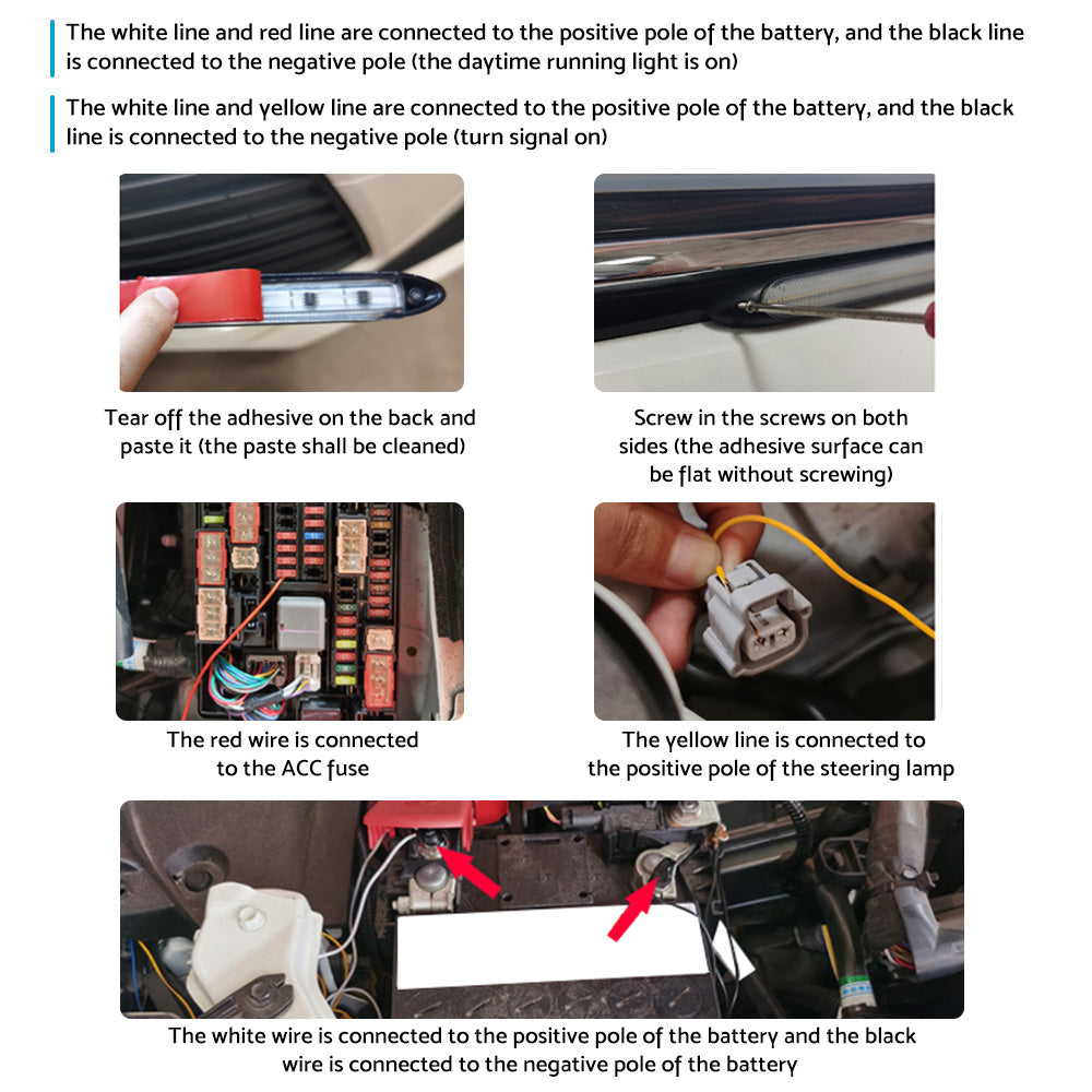 Red Wire: connect to the positive pole of the supply or ACC(+)
